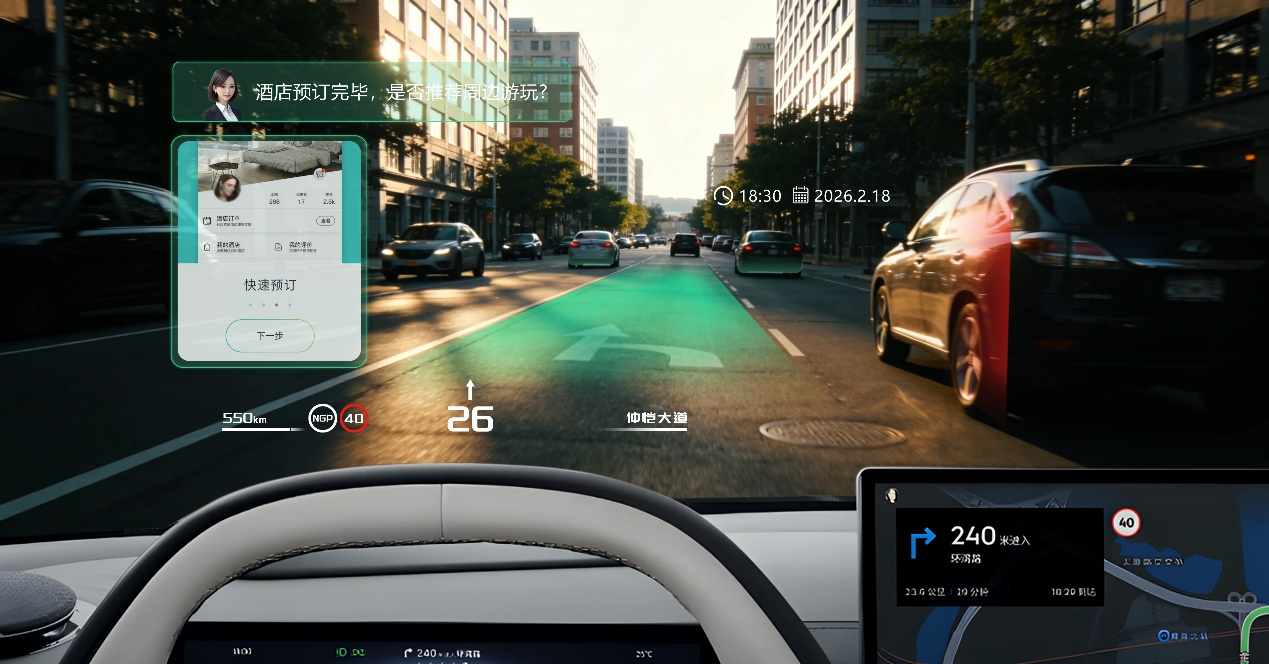 那时,AR-HUD将成为用户与车载AI系统自然、连续对话的可视化载体——无论是融合多场景的出行规划,还是实时日程、服务预约,所有交互都将呈现在驾驶者前方的真实视野中。驾驶者的双手与注意力将从方向盘上释放,交互不再依赖“低头操作”。